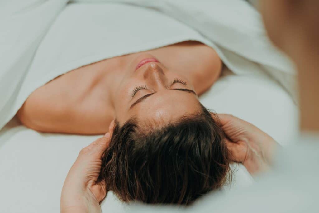 Mild rengöring följt av akupressur, lymfmassage och skalpmassage som minskar svullnad, torrhet och vätskeansamlingar.